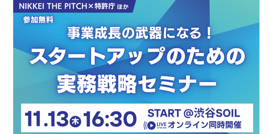 【11月13日16:30~】「スタートアップのための実務戦略セミナー」に登壇します!
